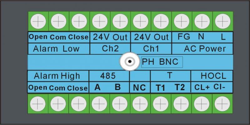 9.High and low alarm: AC220V,10A, each channel can independently select the corresponding measuring parameters( HOCL,FAC,PH,T)