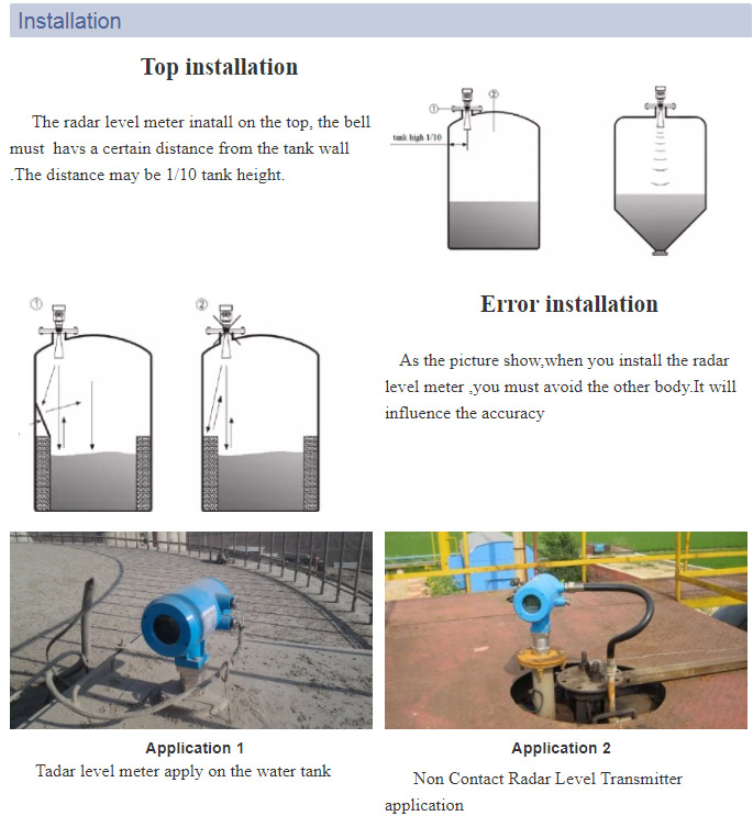 6. The measuring range is smaller of radar level transmitter, for a measurement will yield good results.