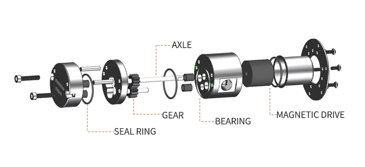 pump is designed with magnetic drive and only O-ring seals, there is no risk of failure of the dynamic seal. Gears and bearings made of PEEK material with special filling materials, high-precision industrial ceramic shafts, one-shot injection gears and special gear type lines with independent intellectual property rights ensure that NP series products have an extremely high service life and wear resistance. Sex. It is ideal for conveying small flow, high pressure, pulsating corrosive liquids, abrasive liquids, and high temperature liquids.
