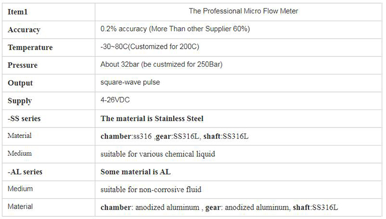Illustrate:1.All stainless steel 316L&Aluminum 2.0.2% accuracy beyond 90% peers 3.stabe pulse output 4.no complaint and more 5 years working life 5.min flow 0.1ml/min max pressure 1000Bar