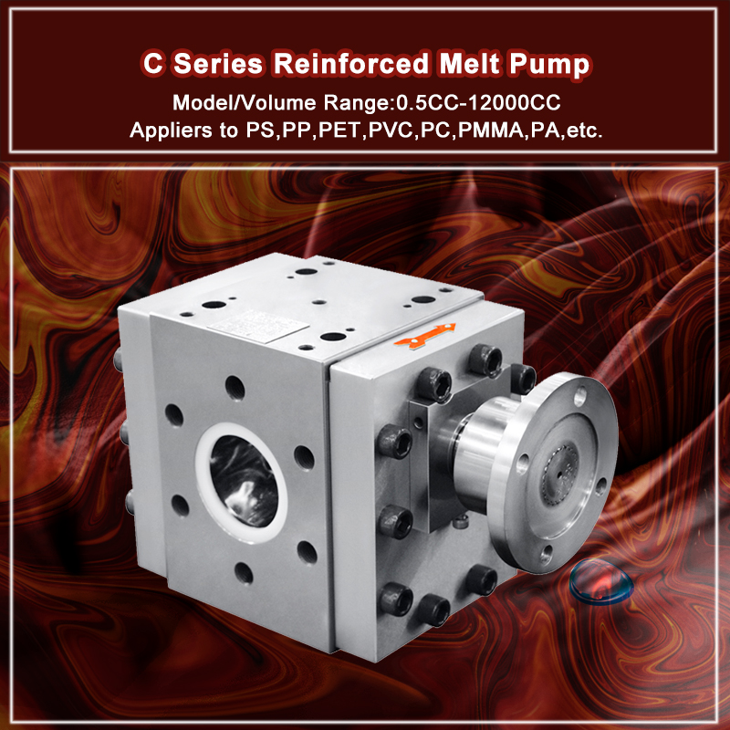 C Series Reinforced Melt Pump is mainly used for stabilizing,pressurization and transportation of medium or high viscosity medium from the polymer flow layer.This series of melt pump adopts electric heating,and appliers to PS,PP,PET,PVC,PC,PMMA,PA,etc. |