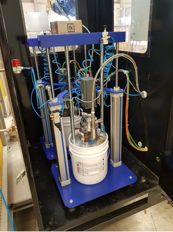 They are doing a job together with SIkaflex to apply a polyurethane(medium) based adhesive in the mixing ratio of 10: 1 (data sheet attached) the volume to be applied is 50 grams per piece.