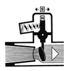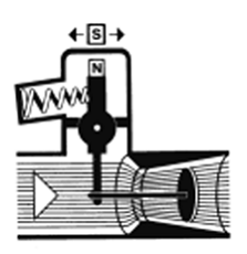 A hinged measuring disc moves freely in the axis of a tapered tube (DW 181, DW 182 only). At flowing conditions, the system adjusts so that the force acting on the disc is in equilibrium with the spring force. Each flow rate thus corresponds to a particular position of the indicator and simultaneously actuates the limit