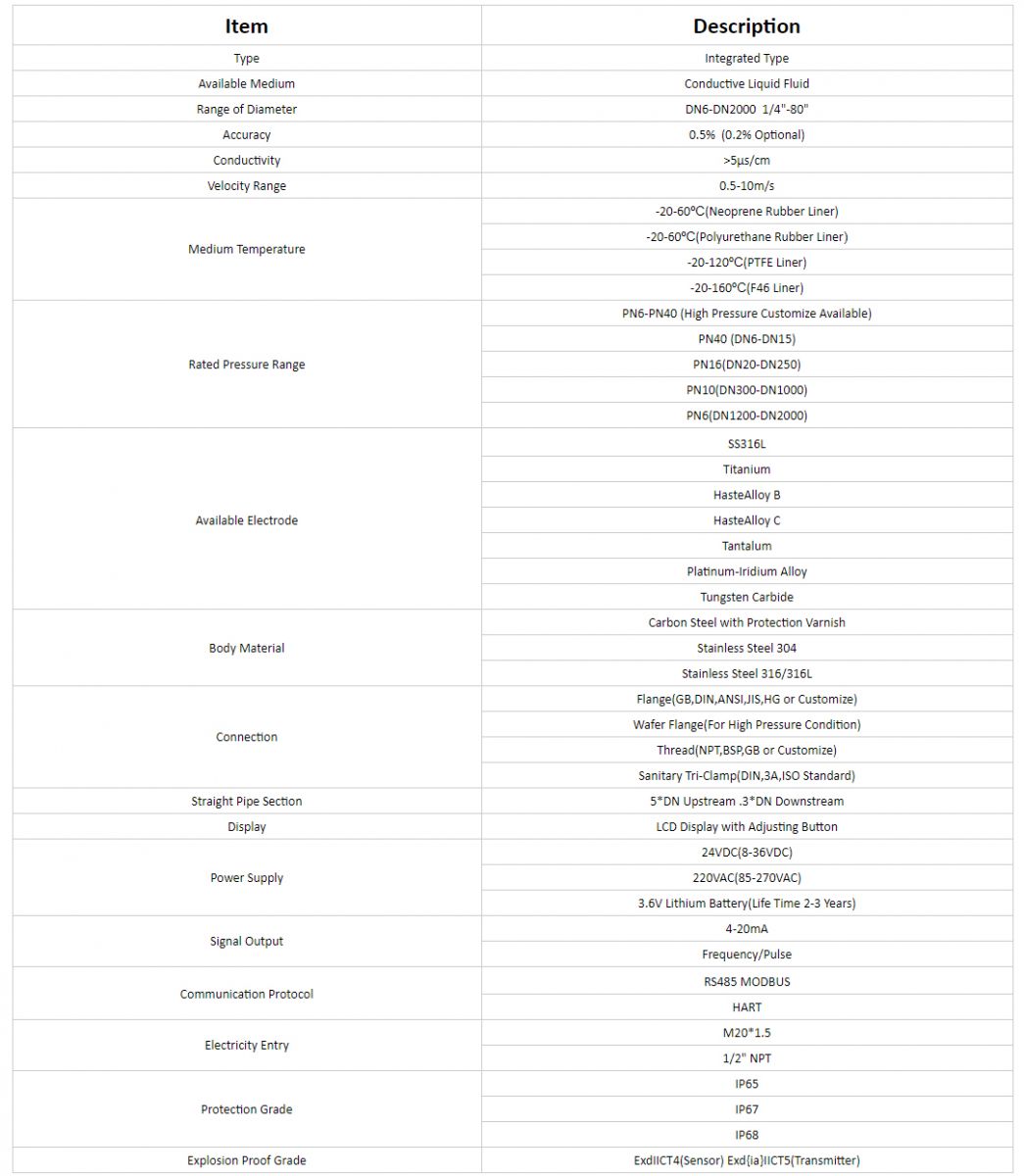 Type:Electromagnetic Flow Meter for Water and Chemical