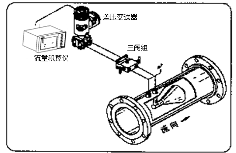 錐形流量計是一種差壓式流量儀表,與其它通用的差壓流量計原理相同,都基于密閉管道中能量相互轉(zhuǎn)化的伯努力定律。在穩(wěn)定流場的情況下,管道中的流速與差壓的平方根成正比。如上游的壓力為P