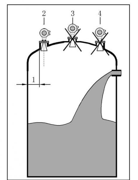 l 喇叭天線必須調(diào)整至垂直,不要讓雷達(dá)束指向罐壁。