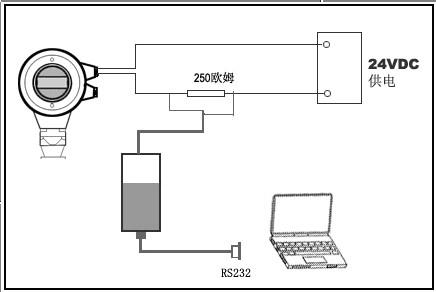 使用軟件調(diào)試的時(shí)候,給雷達(dá)儀表加電24VDC,同時(shí)在連接HART適配器前端加一個(gè)250歐姆的電阻。如果一體式HART電阻(內(nèi)部電阻250歐姆)的供電儀表,就不需要附加外部電阻,HART適配器可以和4…20mA線并聯(lián)。
